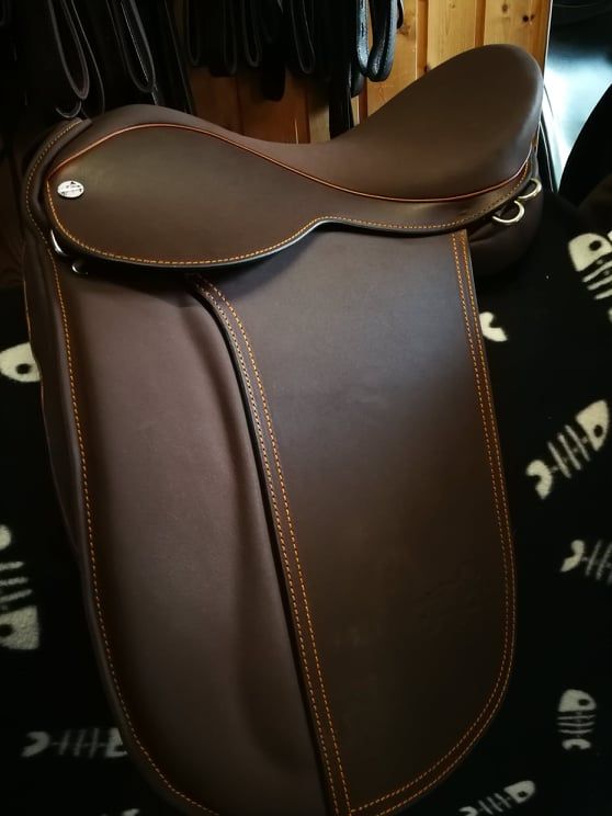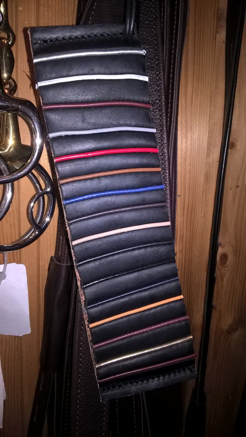 prachtig staat dit rode hoofdstel bij de kleuren van de biezen van dit zadel